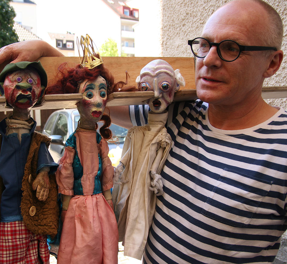 Frage: So? Gibt es da keine räumlichen Beschränkungen? Sie haben doch ein großes Puppentheater dabei?